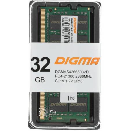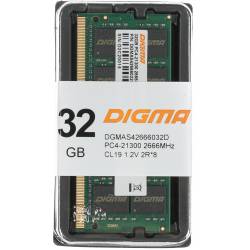 Память DDR4 32Gb 2666MHz Digma DGMAS42666032D RTL PC4-21300 CL19 SO-DIMM 260-pin 1.2В dual rank Ret