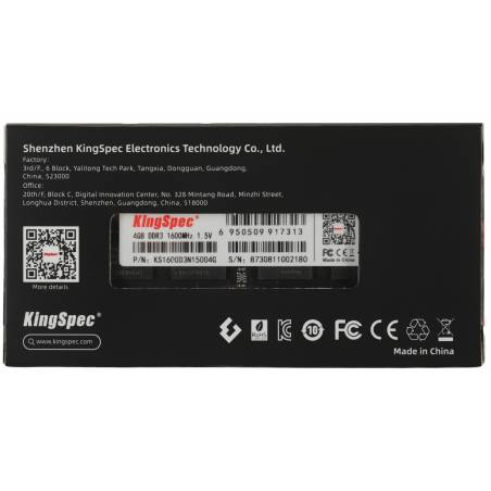 Память DDR3 4GB 1600MHz Kingspec KS1600D3N15004G RTL PC3-12800 CL11 SO-DIMM 204-pin 1.5В single rank Ret