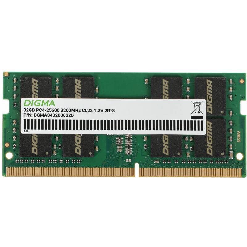 Память DDR4 32GB 3200MHz Digma DGMAS43200032D RTL PC4-25600 CL22 SO-DIMM 260-pin 1.2В dual rank Ret