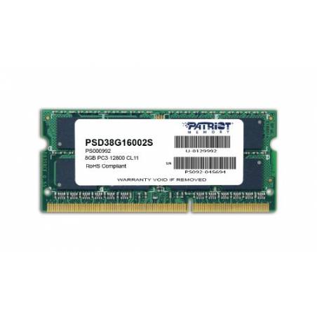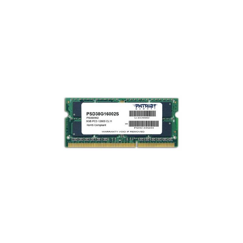 Память DDR3 8Gb 1600MHz Patriot PSD38G16002S RTL PC3-12800 CL11 SO-DIMM 204-pin 1.5В dual rank Ret