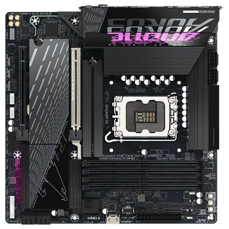 Материнская плата Gigabyte B860M A ELITE WIFI6E Soc-1851 Intel B860 4xDDR5 mATX AC`97 8ch(7.1) 2.5Gg RAID+HDMI+DP