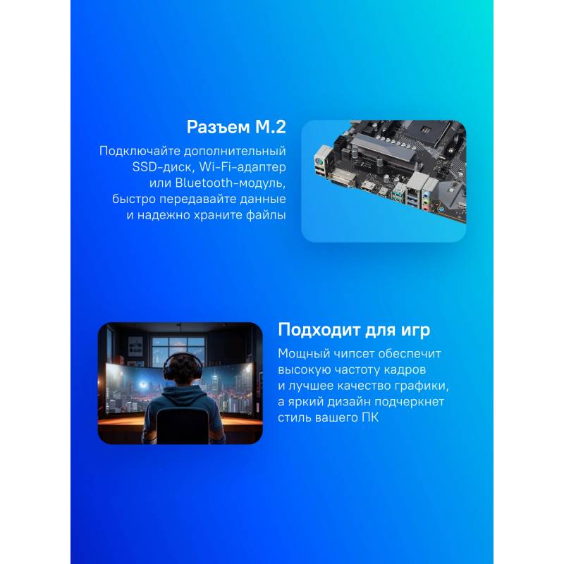 - заглушка тыловых портов корпуса, 2 кабеля SATA, упаковка винтов для M.2, руководство пользователя, диск с ПО