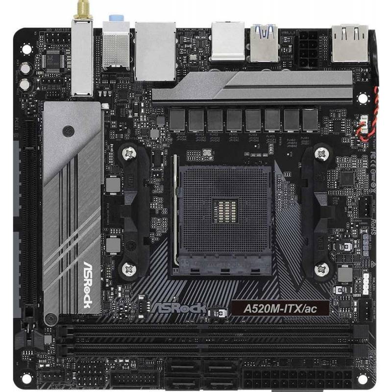 Материнская плата Asrock A520M-ITX/AC Soc-AM4 AMD A520 2xDDR4 mini-ITX AC`97 8ch(7.1) GbLAN RAID+HDMI+DP