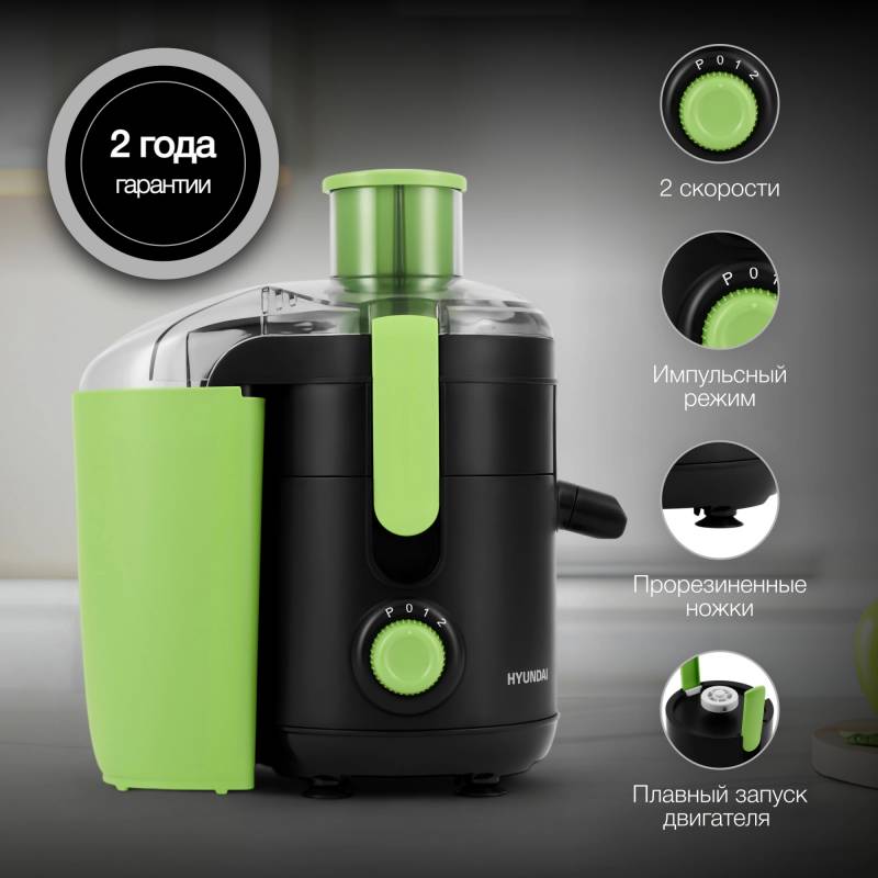 Соковыжималка центробежная Hyundai HY-JE1625 500Вт рез.сок.:450мл. черный/зеленый