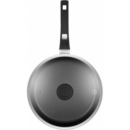 - Надежная ненагревающаяся эргономичная ручка из бакелита с Soft Touch покрытием. Крышка из термостойкого стекла с отверстием для выпуска пара. Подходит для всех видов плит, включая индукцию. Не рекомендуется мыть в ПММ во избежание повреждения покрытия на