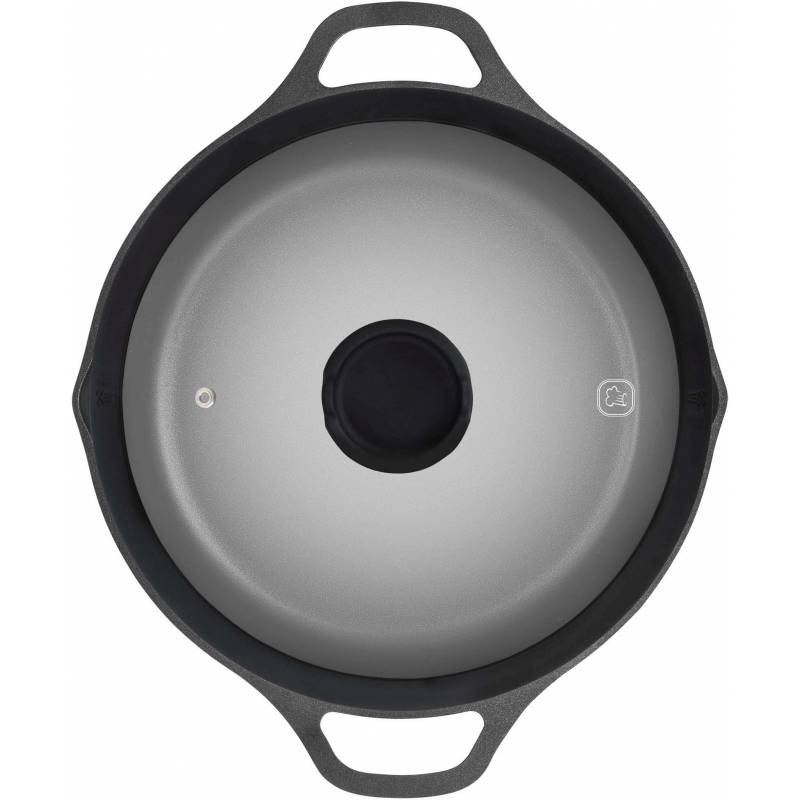 - Посуда изготовлена из литого алюминия, известного своей высокой теплопроводностью, а значит рекомендуется для длительного томления блюд. Внутреннее трехслойное антипригарное покрытие Eclipse HB: абсолютно безопасное и невероятно прочное, поэтому можно