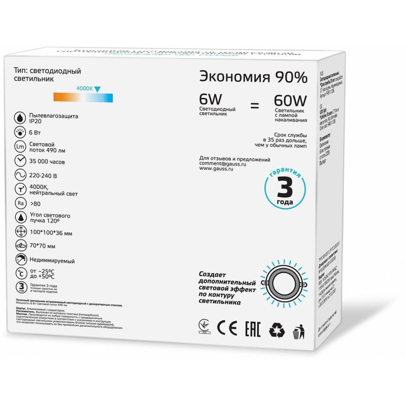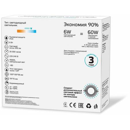 Светильник Gauss 948111206 4000K цв.св.:белый нейтральный белый