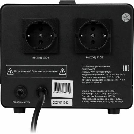Стабилизатор напряжения Smartwatt AVR Tower 1500RF 1500ВА черный