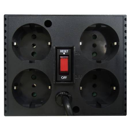 - эффективность до 95%, потребляемая мощность менее 10 Вт, варистор для защиты от всплексов напряжения, стабилизация выходного напряжения +/- 5%, индикатор включения, индикатор пониженного напряжения, индикатор повышенного напряжения, все розетки оборудован