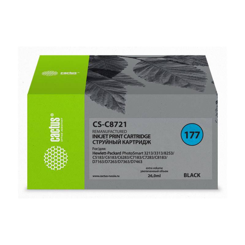 Картридж струйный Cactus CS-C8721 №177 черный (26мл) для HP PS 3213/3313/8253/C5183/C6183/C6283/C7183/C7283/C8183/D7163/D7263/D7