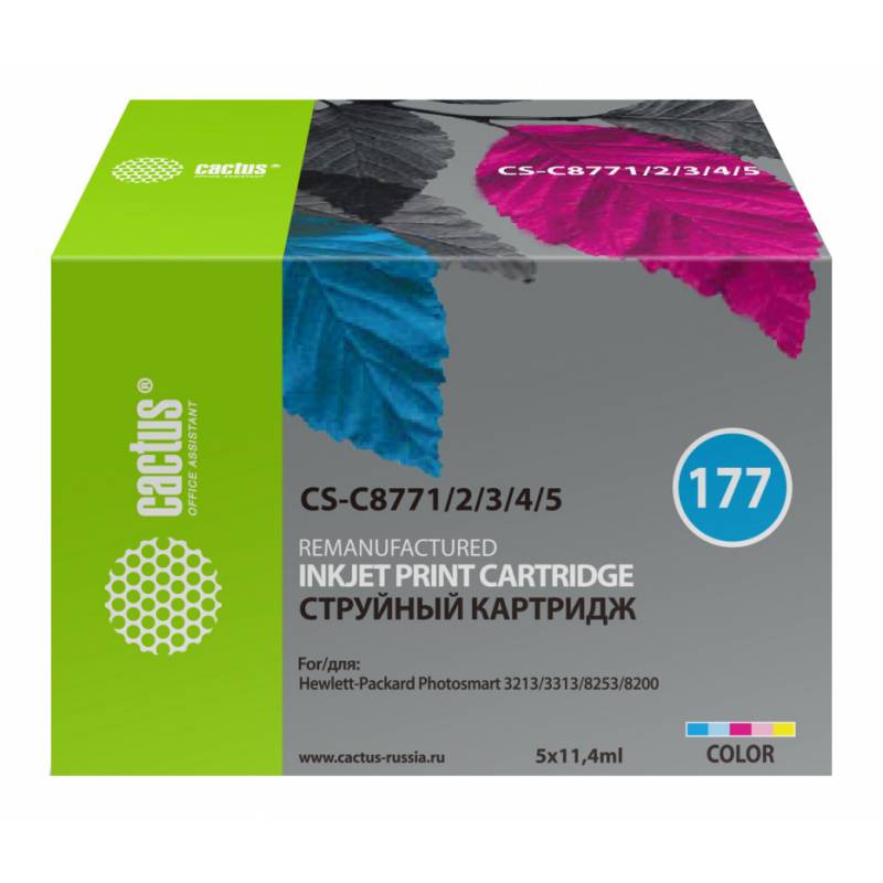 Картридж струйный Cactus CS-C8771/2/3/4/5 №177 голубой/пурпурный/желтый/светло-голубой/светло-пурпурный набор (11.4мл) для HP PS