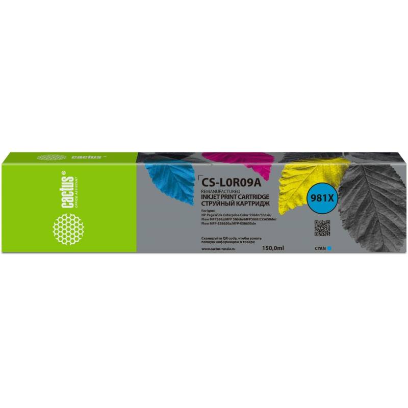 Картридж струйный Cactus CS-L0R09A 981X голуб.пигм. (150мл) для HP PageWide 556dn Enterprise/586dn