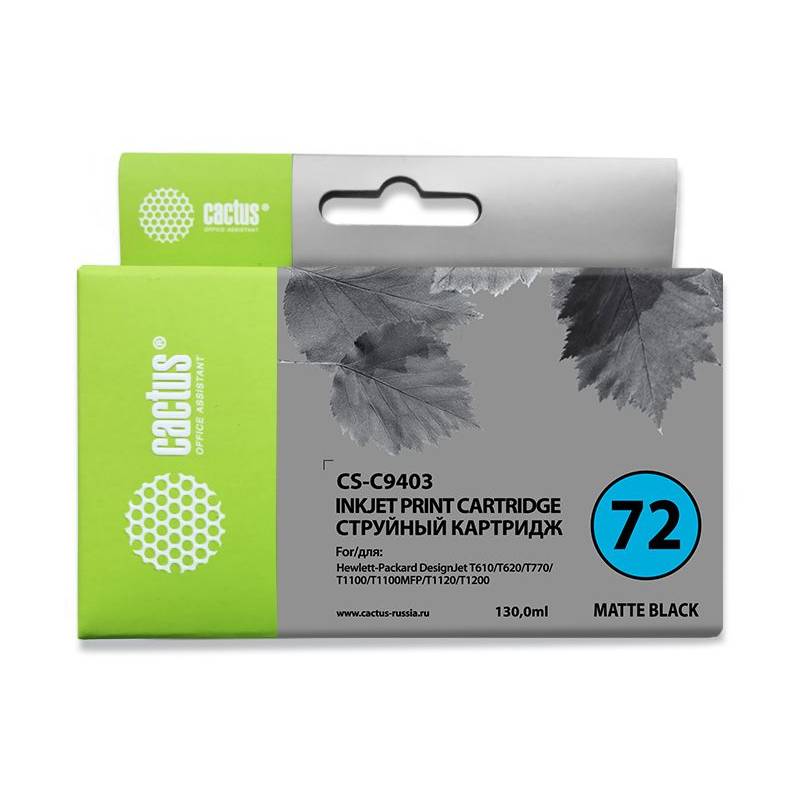Картридж струйный Cactus CS-C9403 №72 черный матовый (130мл) для HP DJ T610/T620/T770/T1100/T1100MFP/T1120/T1200