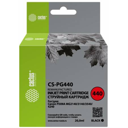 Картридж струйный Cactus CS-PG440 PG-440 черный (180стр.) для Canon Pixma MG2140/3140/2240/2245/3240/3540/3640/4140/4240/4250/MX