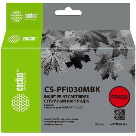 Картридж струйный Cactus CS-PFI030MBK PFI-030MBK черный матовый (55мл) для Canon imagePROGRAF TA-20/30