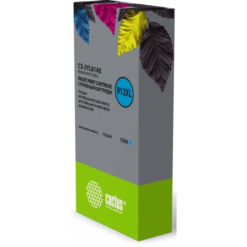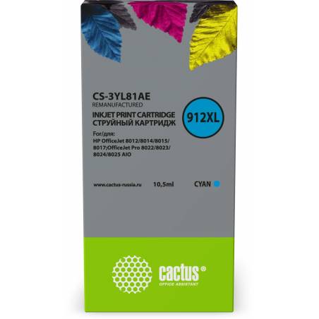 Картридж струйный Cactus CS-3YL81AE 912XL голубой (10.5мл) для HP OfficeJet 8012/8014/8015/8017OfficeJet Pro 8022/8023/8024/802