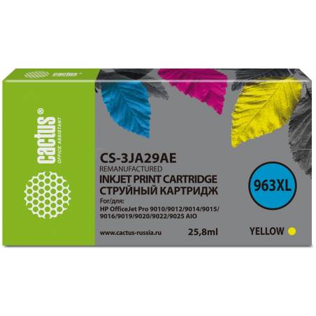Картридж струйный Cactus CS-3JA29AE 963XL желт.пигм. (25.5мл) для HP OfficeJet Pro 9010/9010e/9012/9014/9015/9016/9019