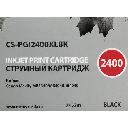 Картридж струйный Cactus CS-PGI2400XLBK PGI-2400XLBK черный пигментный (74.6мл) для Canon MAXIFY iB4040/ МВ5040/ МВ5340