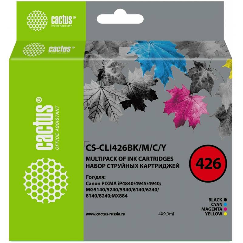 Картридж струйный Cactus CS-CLI426BK/M/C/Y CLI-426 черный/голубой/желтый/пурпурный набор (36мл) для Canon Pixma MG5140/5240/6140