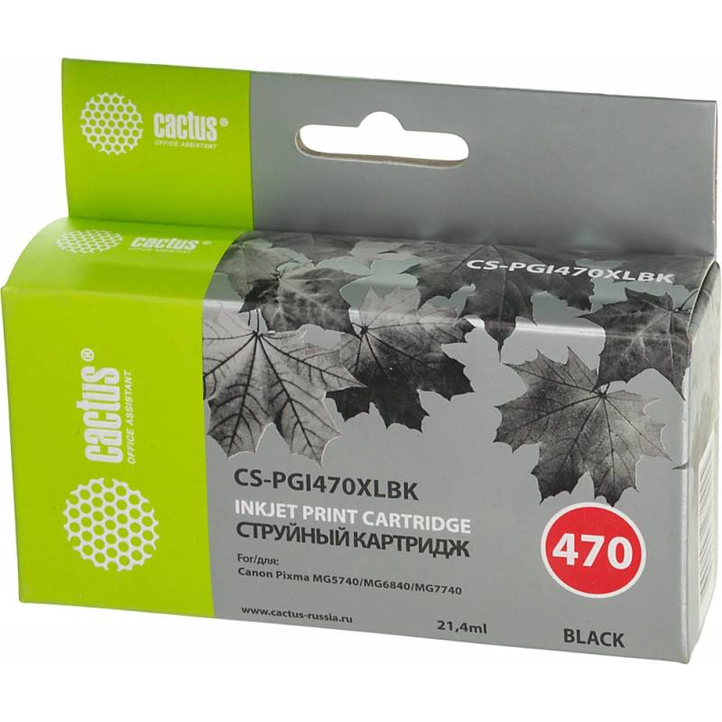 Картридж струйный Cactus CS-PGI470XLBK PGI-470XLBK черный пигментный (21.4мл) для Canon Pixma MG5740/MG6840/MG7740/TS5040/6040/8