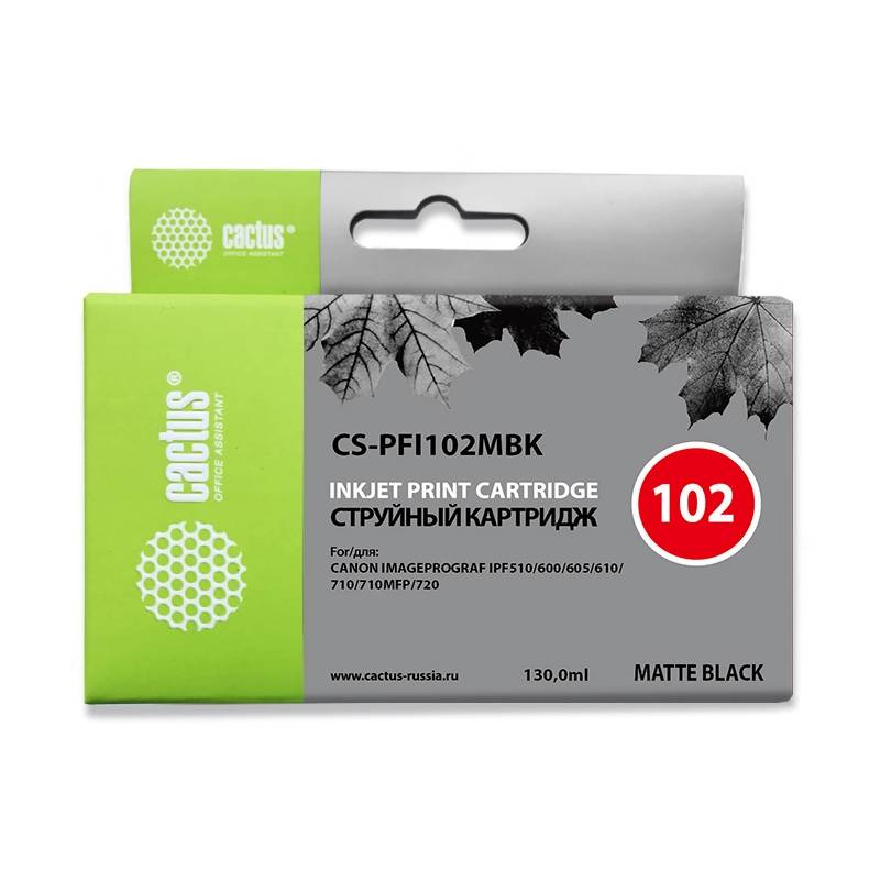 Картридж струйный Cactus CS-PFI102MBK PFI-102 MBK черный матовый (130мл) для Canon iPF500/iPF600/iPF700/ MFP M40/iPF765/LP17/LP2