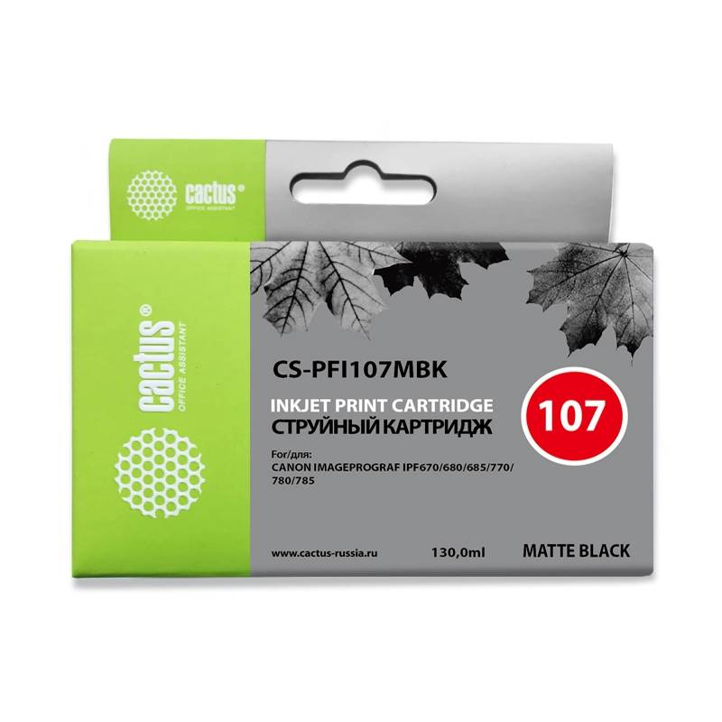 Картридж струйный Cactus CS-PFI107MBK PFI-107 MBK черный матовый (130мл) для Canon IP iPF670/iPF680/iPF685/iPF770/iPF780/iPF785