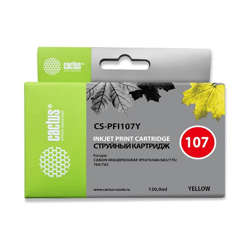 Картридж струйный Cactus CS-PFI107Y PFI-107 Y желтый (130мл) для Canon IP iPF670/iPF680/iPF685/iPF770/iPF780/iPF785/