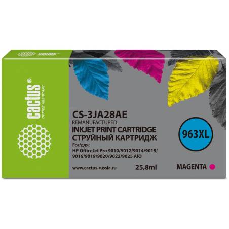Картридж струйный Cactus CS-3JA28AE 963XL пурп.пигм. (25.5мл) для HP OfficeJet Pro 9010/9010e/9012/9014/9015/9016/9019