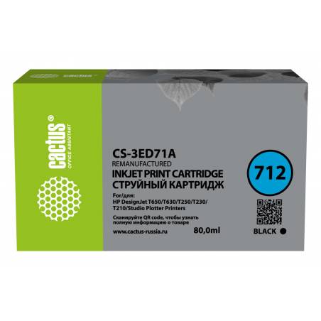 Картридж струйный Cactus CS-3ED71A 712 черный (80мл) для HP DJ T230/T630/T650