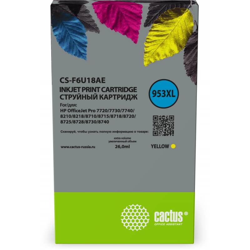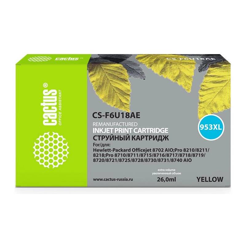 Картридж струйный Cactus CS-F6U18AE 953XL желтый (26мл) для HP OJ Pro 7740/8210/8218/8710/8715