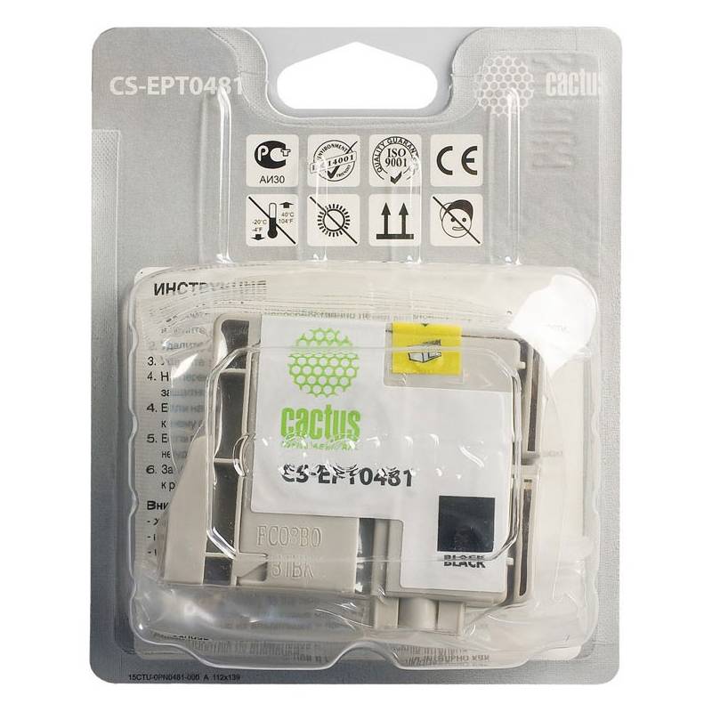 Картридж струйный Cactus CS-EPT0481 T0481 черный (16мл) для Epson Stylus Photo R200/R220/R300/R320/R340/RX500/RX600/RX620/RX640