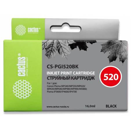 Картридж струйный Cactus CS-PGI520BK черный пигментный (16мл) для Canon Pixma MP540/MP550/MP620/MP630/MP640/MP660/MP980/MP990/MX