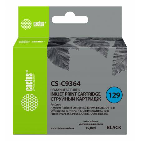 Картридж струйный Cactus CS-C9364 №129 черный (15мл) для HP PS 8053/8753/5943/2573/DJ 5900series
