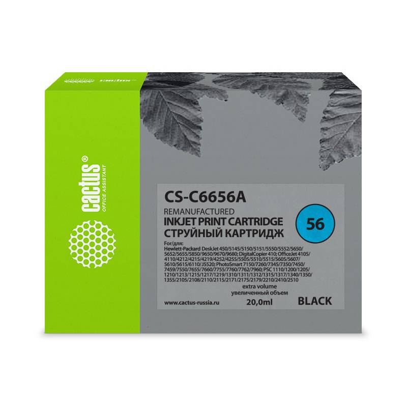 Картридж струйный Cactus CS-C6656A №56 черный (20мл) для HP 450/5145/5150/5151/5550/5552/5650/5652/5655/585