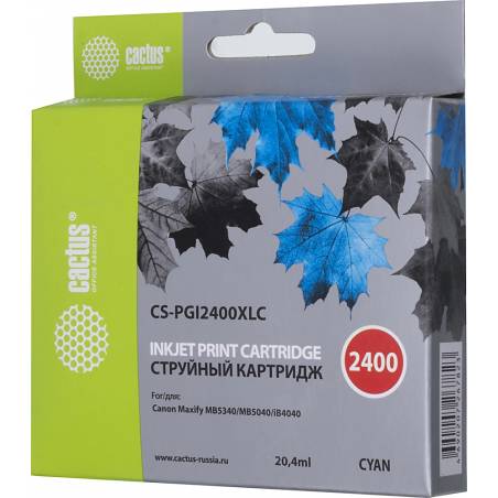Картридж струйный Cactus CS-PGI2400XLC PGI-2400XLC голуб.пигм. (20.4мл) для Canon MAXIFY iB4040/ МВ5040/ МВ5340