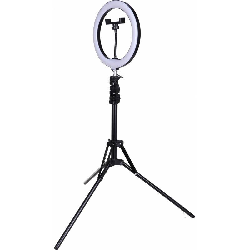 - Кольцевая светодиодная лампа. Шнур питания с пультом и USB-разъёмом. Держатель для смартфона. Гибкое шарнирное крепление (Goose neck). Крепление на стойку (штатив) с интегрированной шаровой головой. Винт регулировки угла наклона лампы. Студийная стойка (д