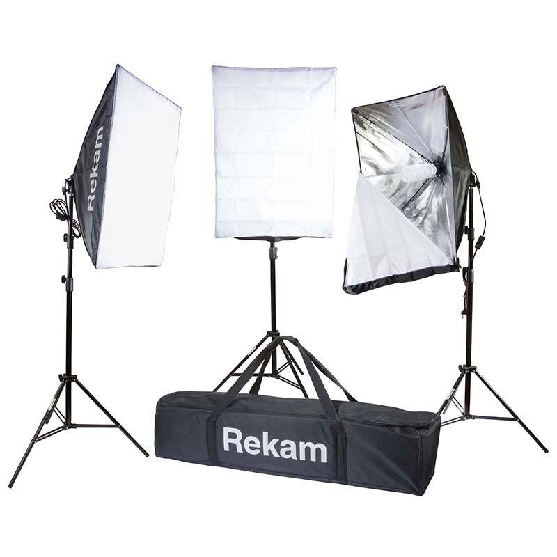 - Осветитель Rekam FL1S (патрон Е27 с выключателем) с несъёмным софтбоксом (внутренняя поверхность – серебряного цвета) 50х70х40 см - 3 шт. Стойка 3-х секционная Rekam LS3-213-2 с максимальной высотой 213 см и нагрузкой до 2 Кг - 3 шт. Лампа флуоресцентная