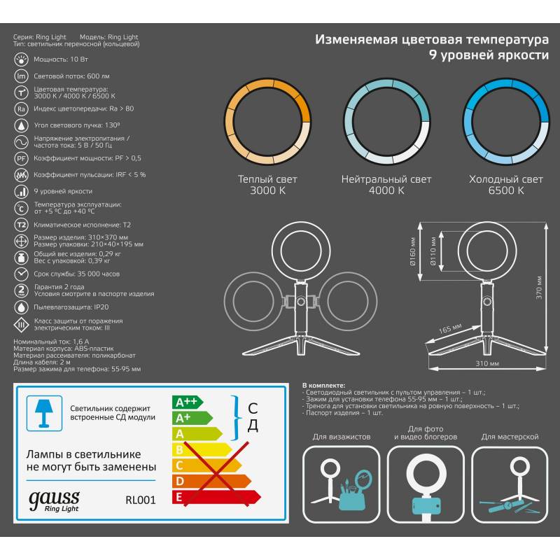 - Светильник, зажим для смартфона, тренога, паспорт светильника