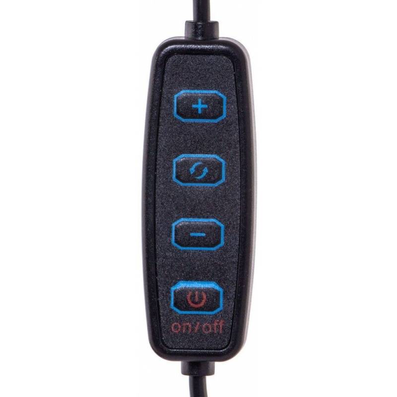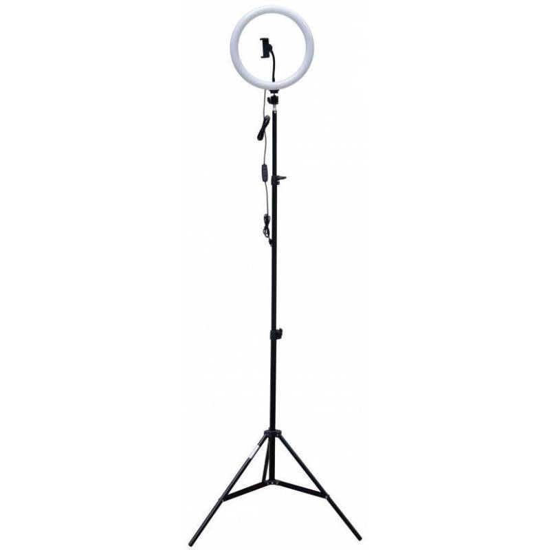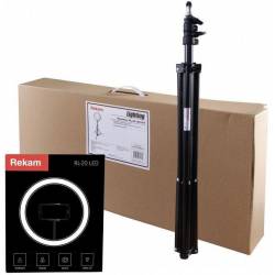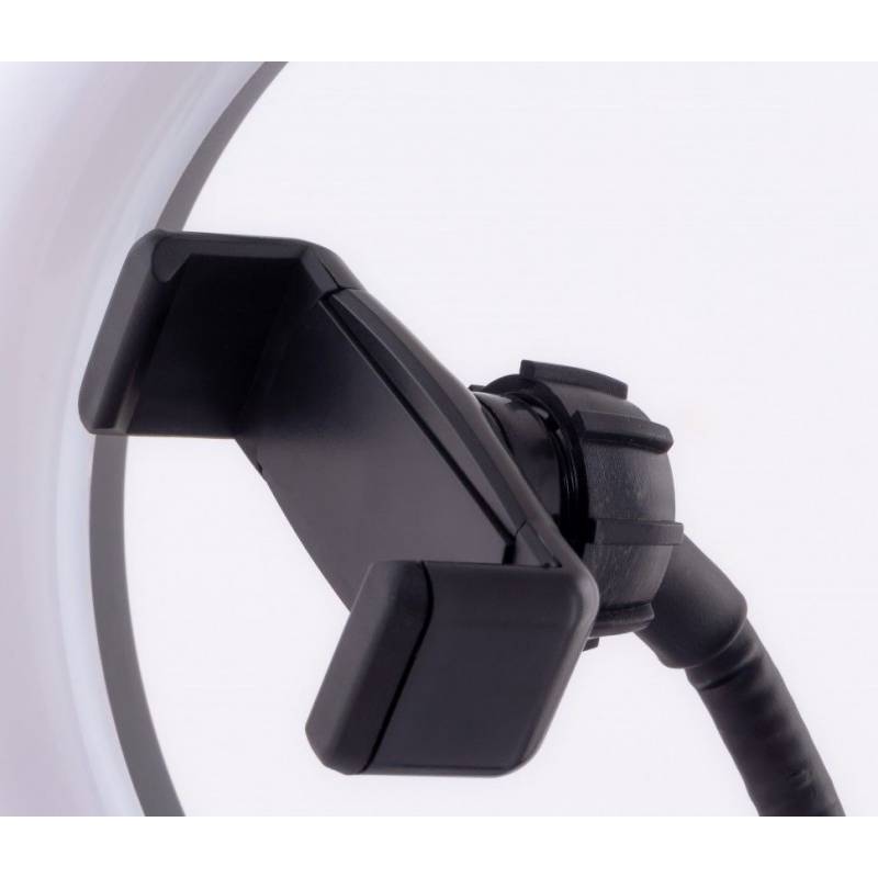 - Кольцевая светодиодная лампа. Шнур питания с пультом и USB-разъёмом. Держатель для смартфона. Гибкое шарнирное крепление (Goose neck). Крепление на стойку (штатив) с интегрированной шаровой головой.. Винт регулировки угла наклона лампы. Студийная стойка R