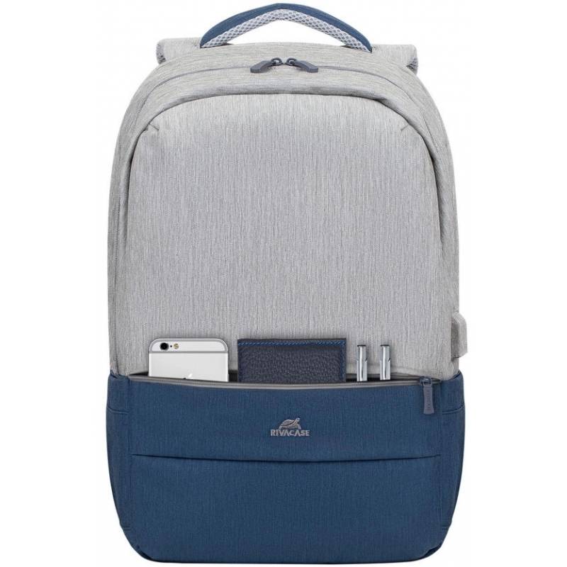 Рюкзак для ноутбука 17.3" Riva 7567 серый/темно-синий полиэстер (7567 GREY/DARK BLUE)