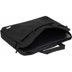 - Удобная сумка классического дизайна для ноутбуков с экраном 15,6 дюйма. В основном отделении предусмотрены съемная перегородка и специальный ремешок для плотной фиксации внутри. Также внутри есть несколько полезных отделений для принадлежностей и личных в