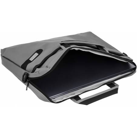 - Удобная сумка классического дизайна для ноутбуков с экраном 15,6 дюйма. В основном отделении предусмотрены съемная перегородка и специальный ремешок для плотной фиксации внутри. Также внутри есть несколько полезных отделений для принадлежностей и личных в