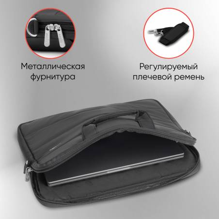 - Простая, тонкая сумка для ноутбуков с экраном диагональю 15,6 дюйма, выполненная из прочного и износостойкого нейлона. Внутри сумка обшита мягким материалом, который препятствует появлению царапин.