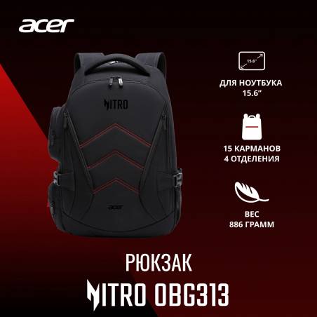 Рюкзак для ноутбука 15.6" Acer Nitro OBG313 черный/красный полиэстер (ZL.BAGEE.00G)