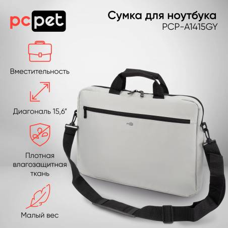 Сумка для ноутбука 16" PC Pet 600D темно-серый нейлон (PCP-A1415GY)