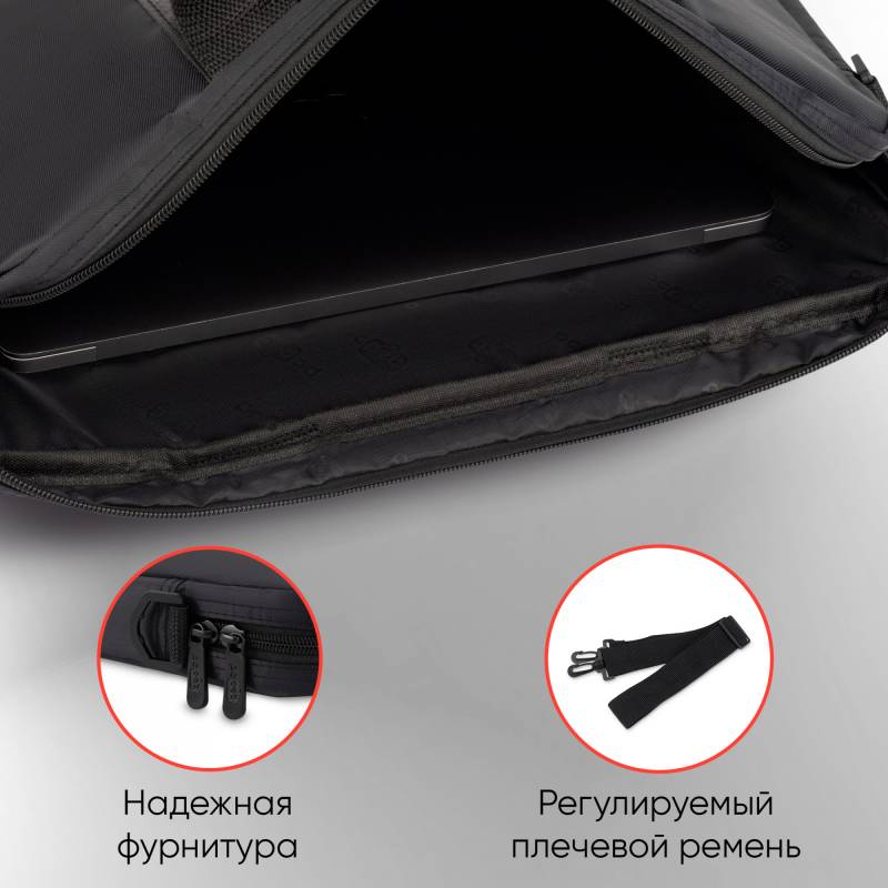- Простая, тонкая сумка для ноутбуков с экраном диагональю 15,6 дюйма, выполненная из прочного и износостойкого нейлона. Внутри сумка обшита мягким материалом, который препятствует появлению царапин.
