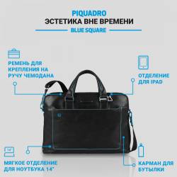Деловая сумка Piquadro Blue Square CA3335B2/N с отделением для ноутбука черный натур.кожа