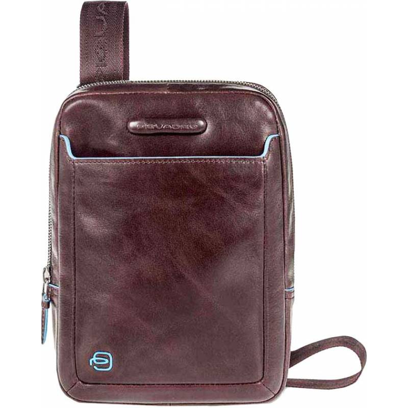 - Вертикальная сумка на плечевом ремне Piquadro выполнена из телячьей кожи с легким глянцевым блеском и отделана голубым кантом. Одно основное отделение, отделение для mini Ipad, карман на молнии, съемное крепление для ключей.