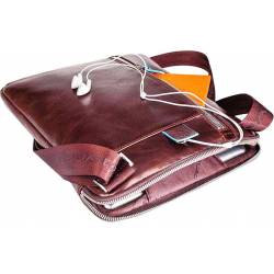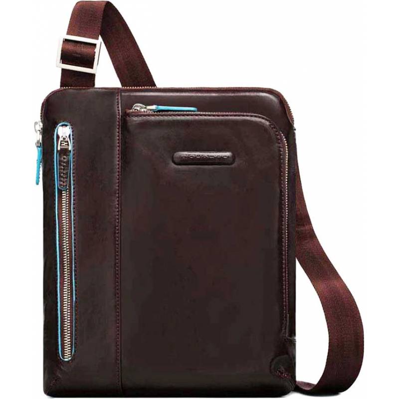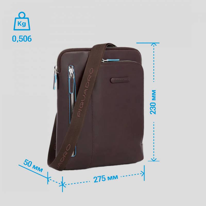 - Мужская вертикальная сумка Piquadro выполнена из красно-коричневой, слегка мятой кожи. Размер сумки – 23х27.5х5 см. Прямоугольная плоская сумка на молнии снабжена наплечным ремнем из текстиля. который регулируется по длине. Крепления для ремней.