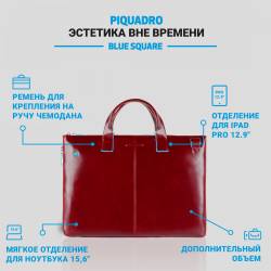 Деловая сумка Piquadro Blue Square CA4021B2/R с отделением для ноутбука красный натур.кожа